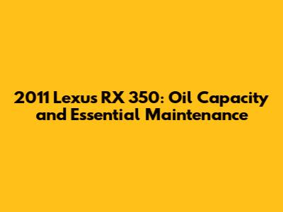 2011 Lexus RX 350: Oil Capacity & Maintenance Guide