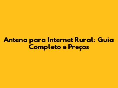 Antena Para Internet Rural: Guia Completo E Preços