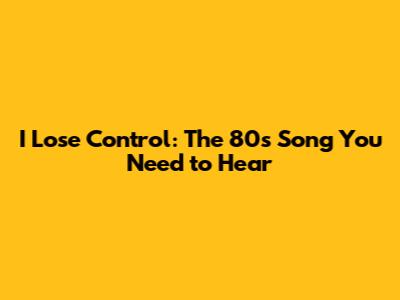 I Lose Control: The 80s Song You Need To Hear