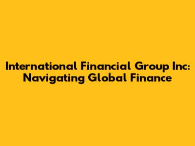 International Financial Group Inc: Navigating Global Finance