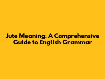 Jute Meaning: A Comprehensive Guide To English Grammar
