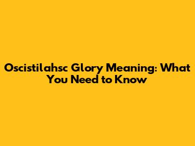 Oscistilahsc Glory Meaning: What You Need To Know