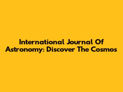 International Journal Of Astronomy: Discover The Cosmos
