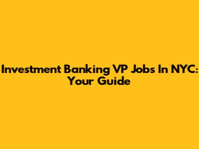 Investment Banking VP Jobs In NYC: Your Guide