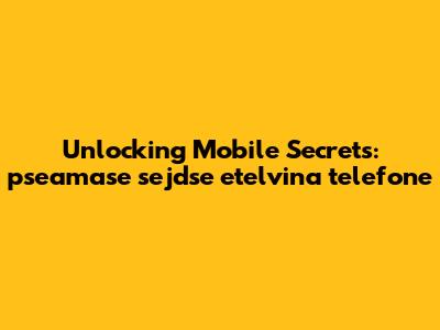 Unlocking Mobile Secrets: Pseamase Sejdse Etelvina Telefone