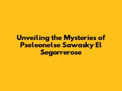 Unveiling The Mysteries Of Pseleonelse Sawasky El Segorrerose